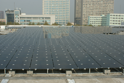 該項(xiàng)目的投資方和建設(shè)方,龍焱能源科技(杭州)有限公司的銷售總監(jiān)包鋼為我們揭開了答案。他說,泰爾茂公司的屋頂光伏電站項(xiàng)目有幾個(gè)特殊性,一是該廠房位于處在臺(tái)風(fēng)口的杭州經(jīng)濟(jì)技術(shù)開發(fā)區(qū),因此,業(yè)主單位希望項(xiàng)目盡可能少地受臺(tái)風(fēng)的影響,安全性好;二是該廠房位于經(jīng)濟(jì)開發(fā)區(qū)中心地段,周圍有高檔酒店、大型商業(yè)樓盤及大型醫(yī)院、辦公樓等,對(duì)環(huán)境要求極高。因此,根據(jù)業(yè)主單位的要求,龍焱公司經(jīng)過研究,最后確定放棄傳統(tǒng)的帶傾角斜鋪式做法,而是充分發(fā)揮公司專利產(chǎn)品--高效碲化鎘薄膜光伏組件的優(yōu)勢(shì),做一個(gè)平鋪式混凝土屋頂光伏電站。