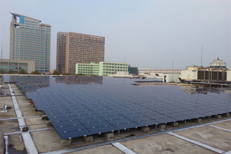 平鋪式的做法得益于龍焱公司產(chǎn)品的獨(dú)特特性。首先,碲化鎘光伏組件對(duì)于光照入射角變化敏感度低,發(fā)電效率受傾角變化影響小,因此,可以在平鋪的情況下依然有較強(qiáng)的發(fā)電能力,由于平鋪式面積利用率高,所以整體上項(xiàng)目發(fā)電能力更強(qiáng);二是碲化鎘光伏板的顏色是純黑的,通過進(jìn)行減反射處理,平鋪后光伏板上的反射光線不會(huì)對(duì)周邊建筑產(chǎn)生直接影響,有效地避免了光污染。不僅如此,龍焱公司作為杭州光伏協(xié)會(huì)的理事單位,還特別邀請(qǐng)了協(xié)會(huì)監(jiān)事單位--禾邁電力電子技術(shù)有限公司為項(xiàng)目提供組串型逆變器,以進(jìn)一步提高系統(tǒng)發(fā)電效率。