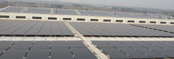 該光伏電站坐落于寧波市北侖區(qū)霞浦的寧波興港貨柜有限公司彩鋼瓦屋頂上,屋頂面積14000平米,裝機容量為1MW,預(yù)計年發(fā)電量為100萬kWh,共安裝了一萬兩千余塊由龍焱能源生產(chǎn)的0.72㎡ ASP-S1-80碲化鎘(CdTe)薄膜太陽能組件。由于碲化鎘薄膜太陽能電池在弱光性、溫度系數(shù)、抗腐蝕能力等方面具有獨特優(yōu)勢,該項目克服了當(dāng)?shù)貪駶櫟臍夂蛞约澳媳毕蛉诵挝蓓斀Y(jié)構(gòu)對發(fā)電量的影響等難題。同時完全國產(chǎn)化組件也讓電站建設(shè)成本大大降低,上述特點為廠區(qū)享受經(jīng)濟(jì)實惠、綠色環(huán)保的電力提供了保障。